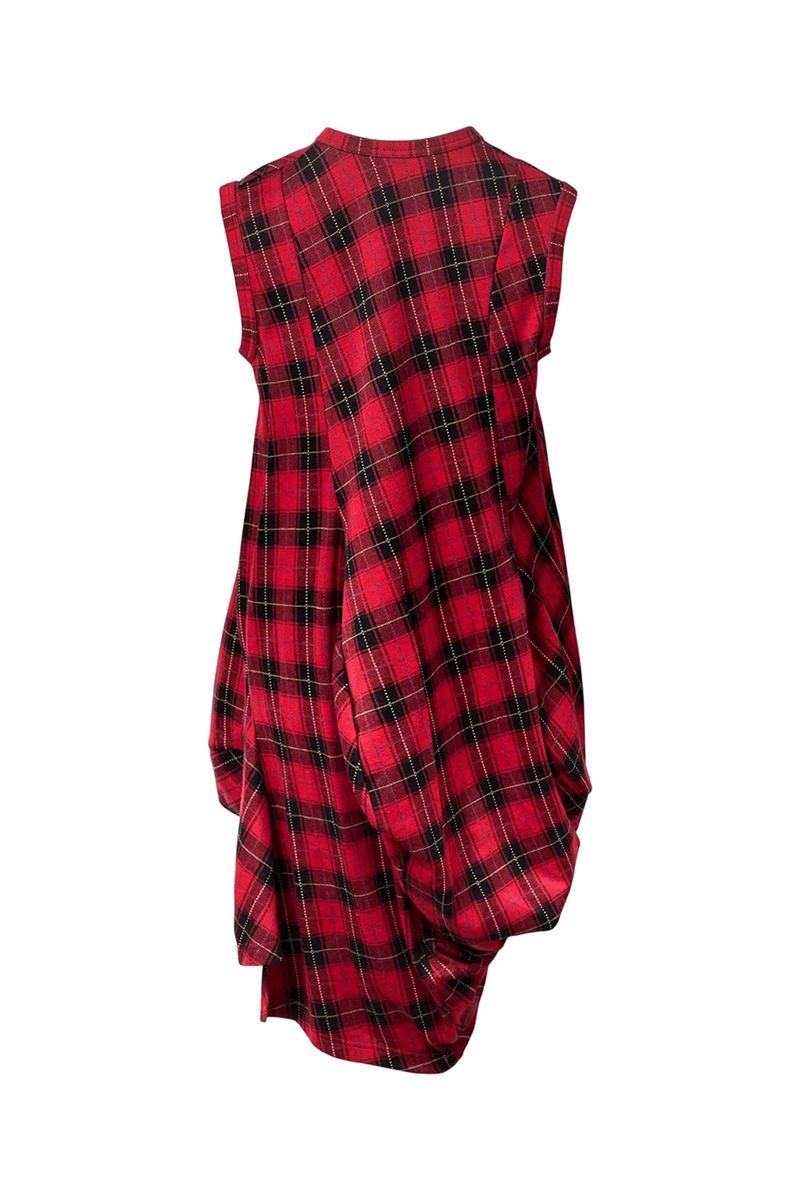 Blusa sem mangas com estampa tartan clássica e design drapeado, criando volume e movimento para um visual contemporâneo. Confeccionada em tecido leve, ideal para compor looks ousados e sofisticados.