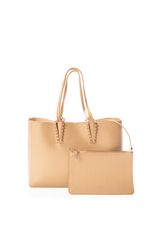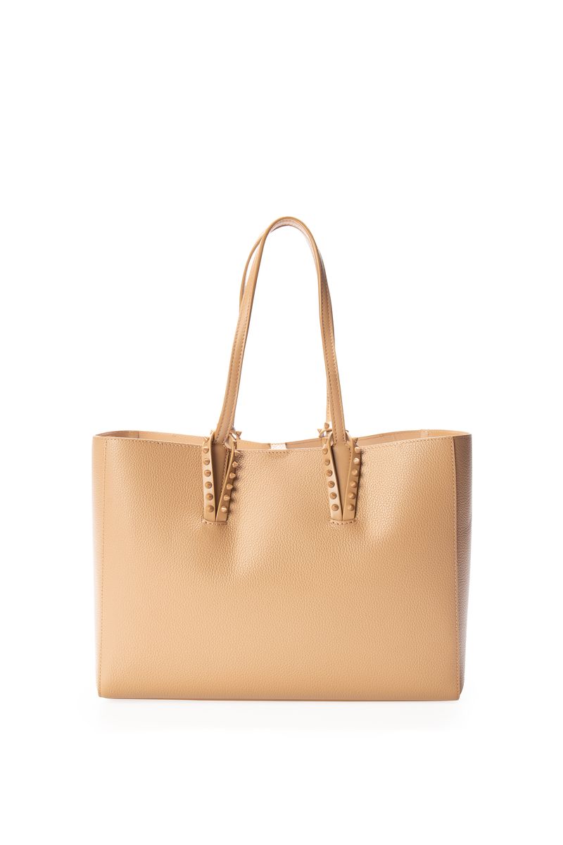 Bolsa tote grande Christian Louboutin "Cabata" em couro martelado com duas alças, detalhe de tachas metálicas douradas, fecho de gancho, zíper interno removível, compartimento principal interno, aplicação de borracha vermelha na parte inferior, detalhe do logotipo em relevo.