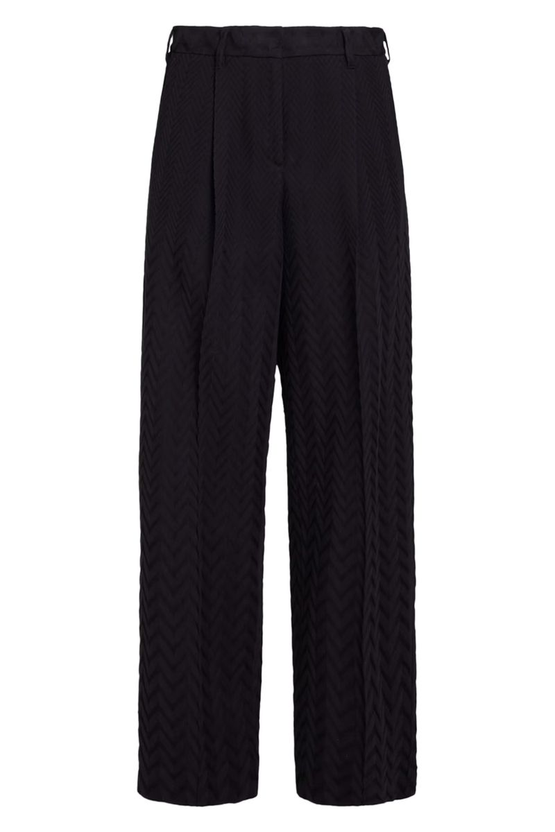 Uma calça feminina de alfaiataria que reinterpreta com elegância o icônico padrão em ziguezague da Missoni, apresentada em versão tom sobre tom com acabamento refinado em raschel. Confeccionada em tecido misto de algodão, combina estrutura e identidade gráfica em uma peça singular com um toque contemporâneo.