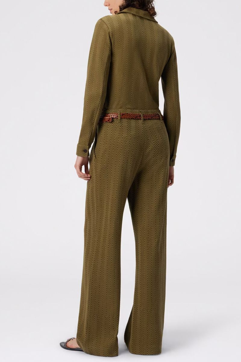 Uma calça feminina de alfaiataria que reinterpreta com elegância o icônico padrão em ziguezague da Missoni, apresentada em versão tom sobre tom com acabamento refinado em raschel. Confeccionada em tecido misto de algodão, combina estrutura e identidade gráfica em uma peça singular com um toque contemporâneo.