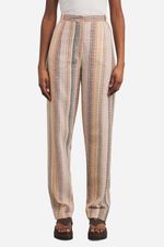 Embora a profusão de cores seja uma opção constante para a Missoni, essa visão se alinha perfeitamente com as demandas dos meses de verão. Com grandes chances de se destacar no seu guarda-roupa casual, estas calças são tricotadas com uma ousada estampa de listras que confere um toque dinâmico ao clássico corte reto.