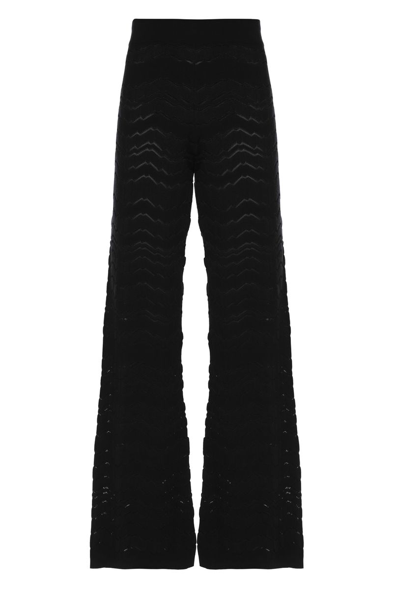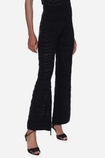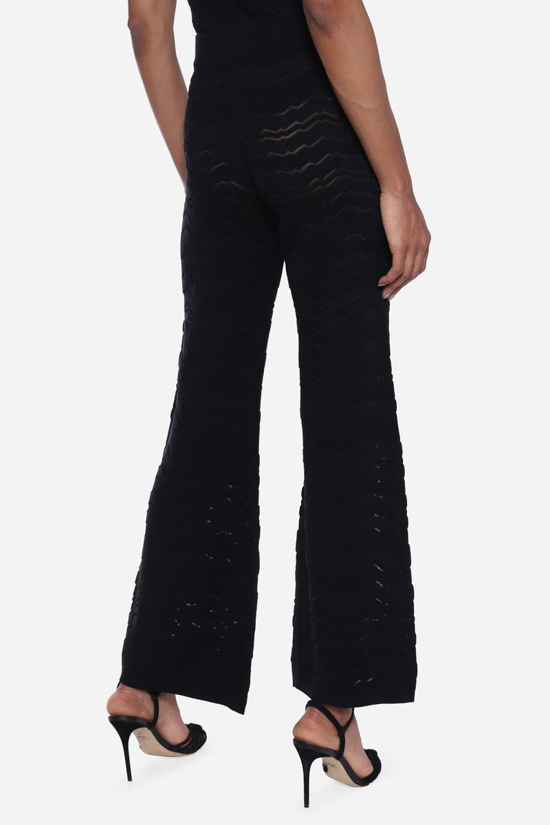 Conforto e estilo em uma peça única! Calça em tricô com estampa chevron, modelagem ampla e cintura alta para um caimento sofisticado. Ideal para compor looks modernos e elegantes.