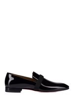 O icônico mocassim Dandydeco é confeccionado em couro de bezerro envernizado preto e combina o conforto de um sapato para ambientes internos com a elegância de um modelo urbano. As linhas elegantes deste modelo, com uma tira na parte superior, são um testemunho do savoir-faire da Maison Christian Louboutin. Um estilo sofisticado com um pequeno salto quadrado.