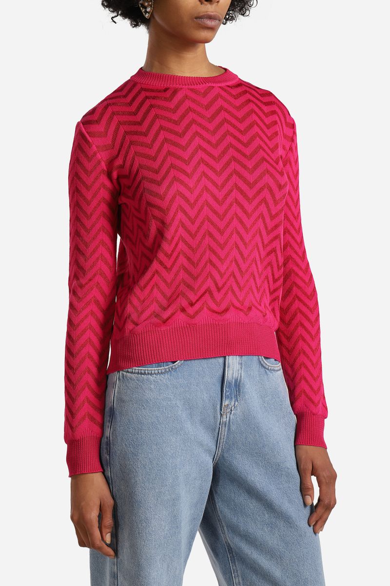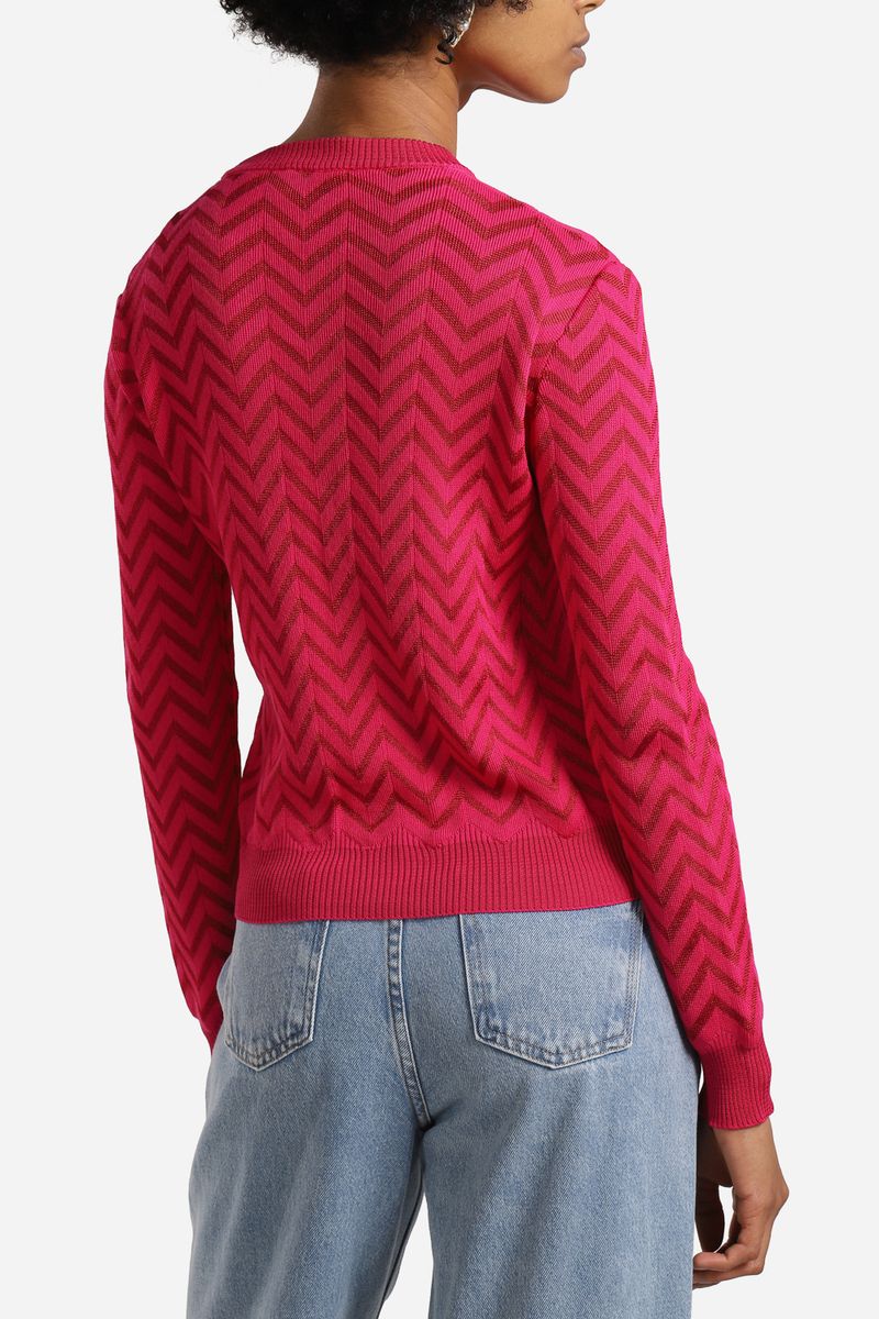 Este suéter de gola redonda é a essência da sofisticação casual. O padrão chevron tom sobre tom, combinado com o corte clássico, torna a peça versátil para qualquer ocasião, sempre com aquele toque inconfundível da Missoni.