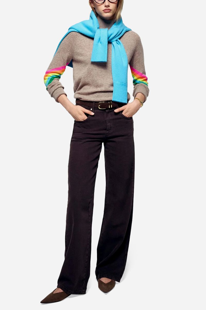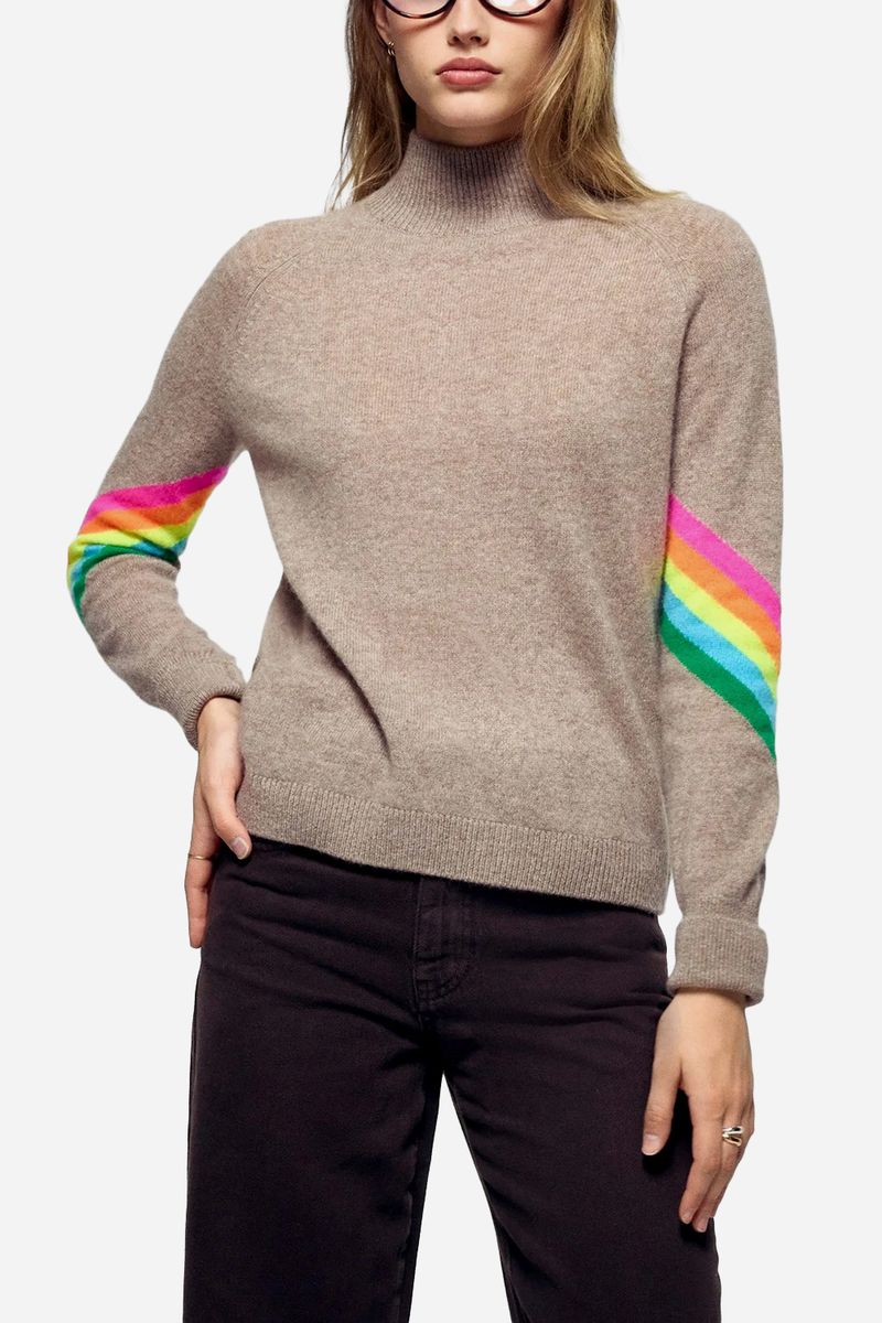 Uma peça icônica do guarda-roupa From Future. Com gola alta e acabamento canelado, este suéter curto de cashmere revela listras multicoloridas nas mangas, iluminando seu look da estação. Combinando maciez e leveza, use-o com calças largas ou uma saia fluida.